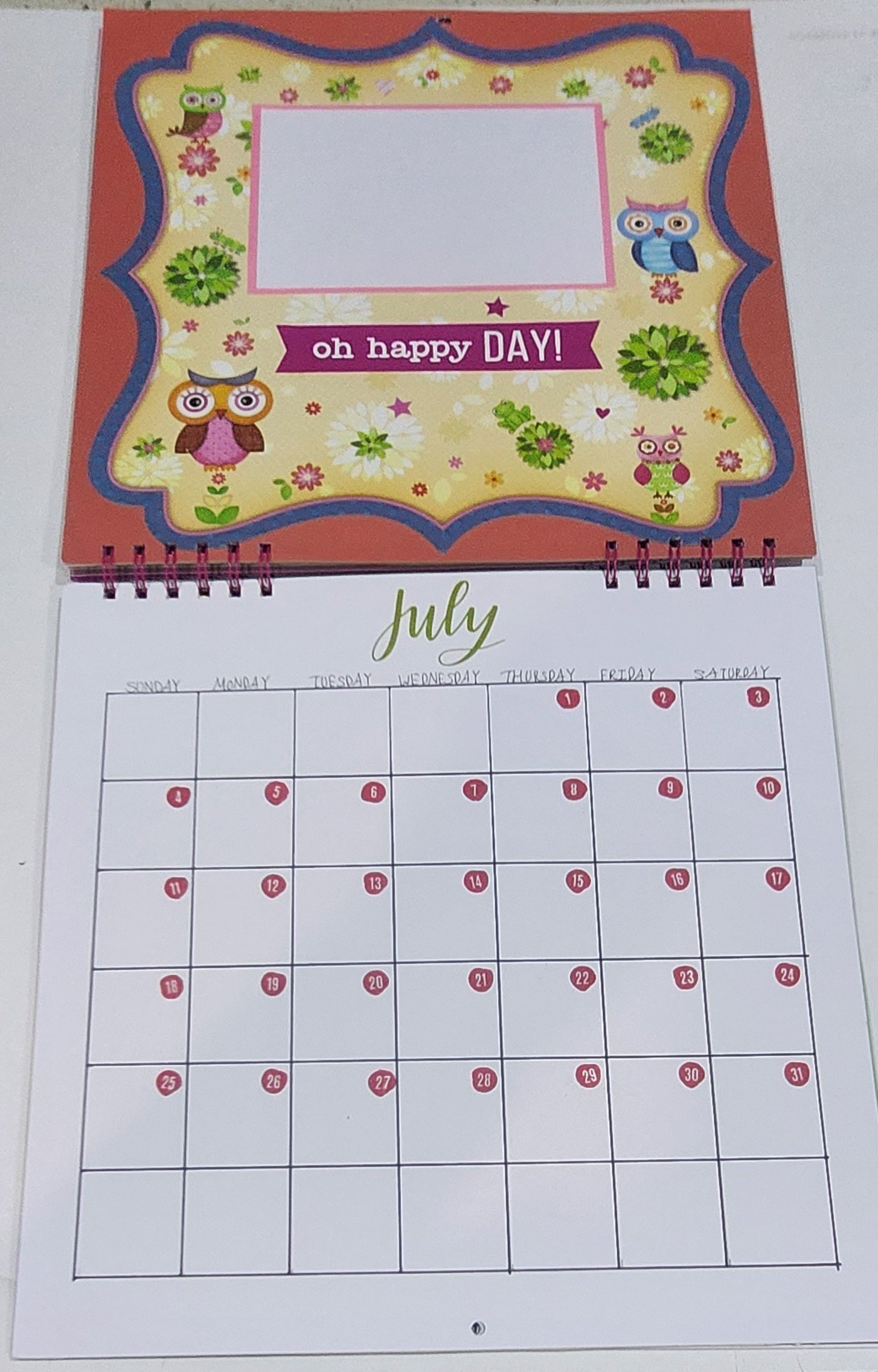 Please note that each calendar (unless custom made) will be different to the one shown due to the pages being different along with the colours used.