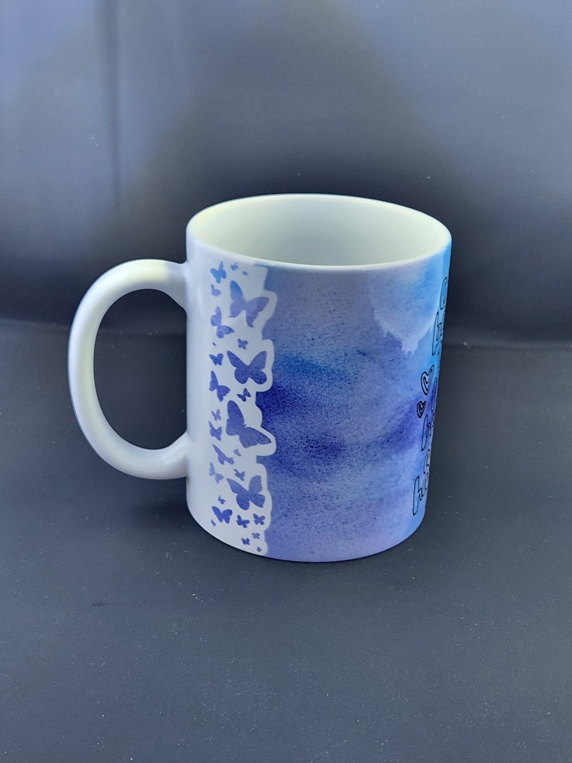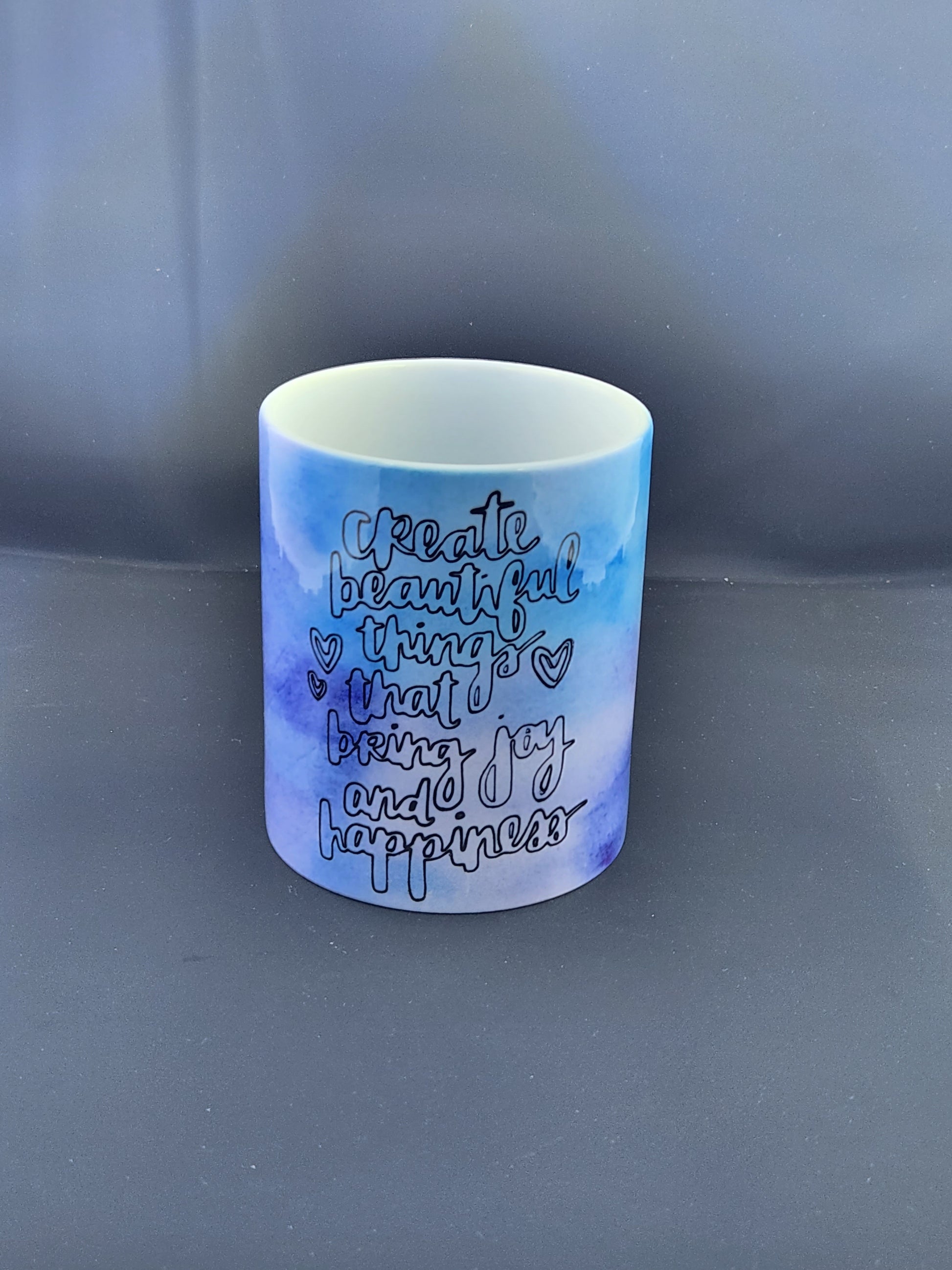 It not only has butterflies fluttering on either side of the handle but it also has a great saying in the middle of mug that reminds you to create beautiful things that bring you joy and happiness.