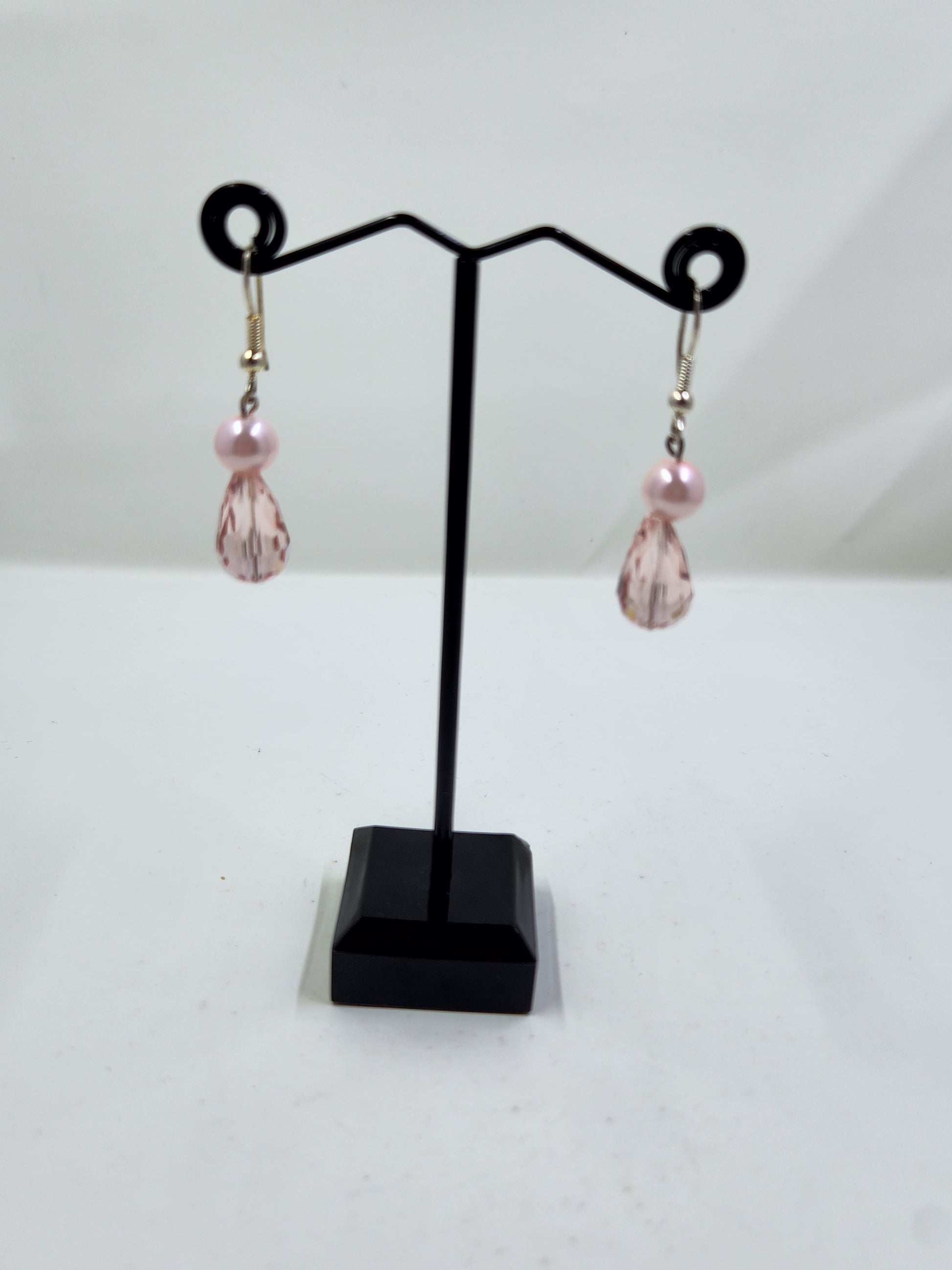Handmade Light Pink Crystal Teardrop and Pearl Dangle Earrings