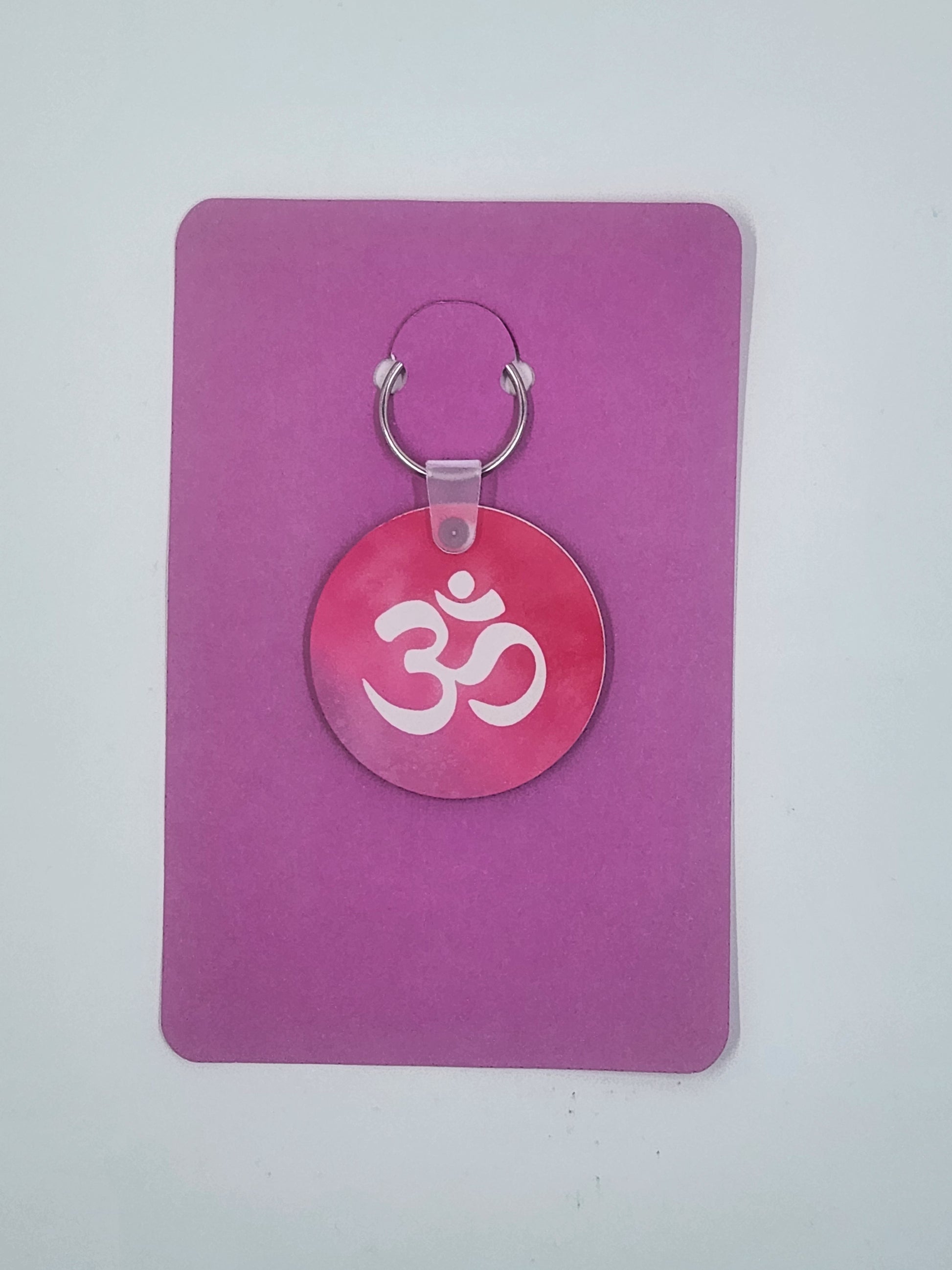 This keyring has a purple and pink background with the Om symbol in the middle. Did you know that the Om symbol symbolises the universe and the ultimate reality (consciousness)?