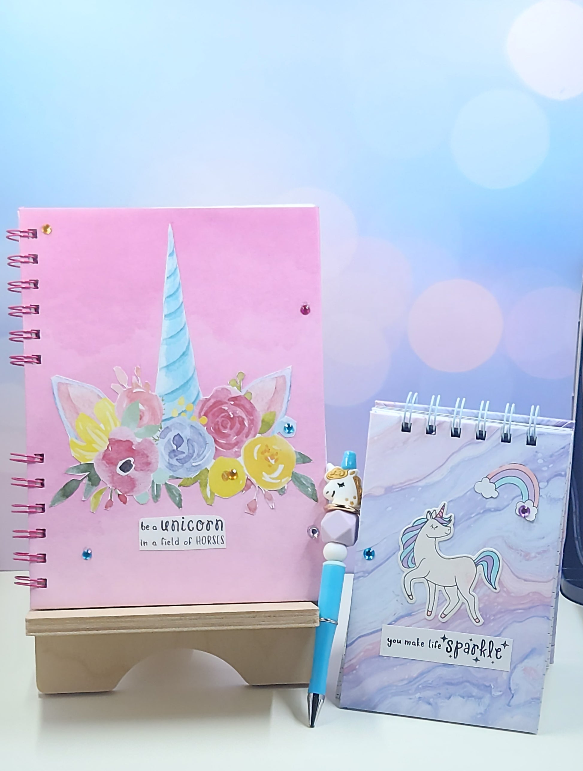 This handmade stationery bundle is perfect for all the unicorn and stationery lovers out there. It makes a great gift and includes a handmade notebook with a Floral Unicorn Horn on the front cover with lined pages inside, a handmade notepad with a unicorn going past a pastel rainbow with a sentiment that says 'You make life Sparkle' with lined pages inside and a beaded unicorn pen that also comes with five refills so you can write to your hearts content.