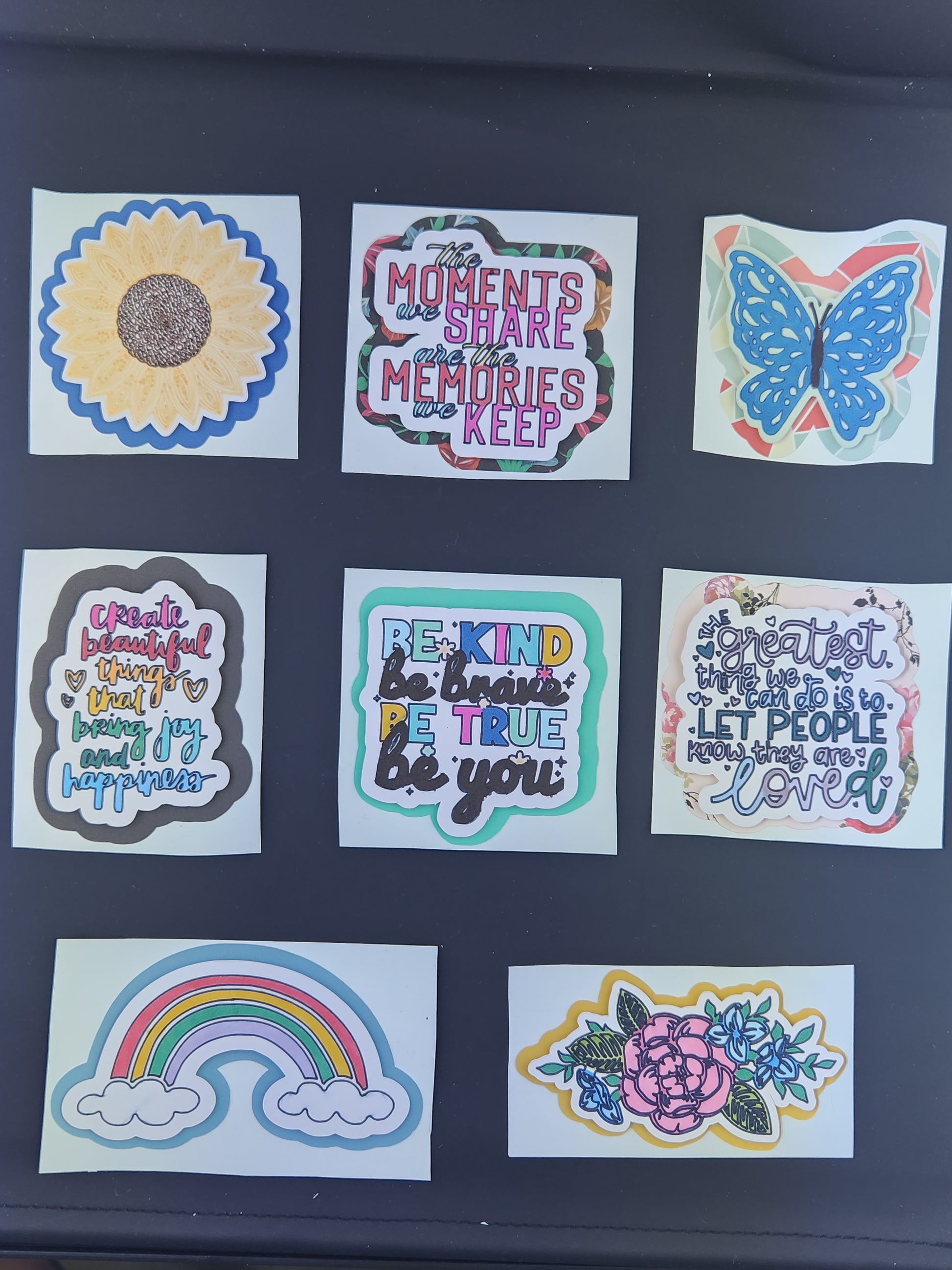 This sticker pack contains 8 3D stickers with 4 stickers containing quotes or sayings to allow you to love the life you live while the other 4 are stickers that resemble these sayings while being bright and cheerful.